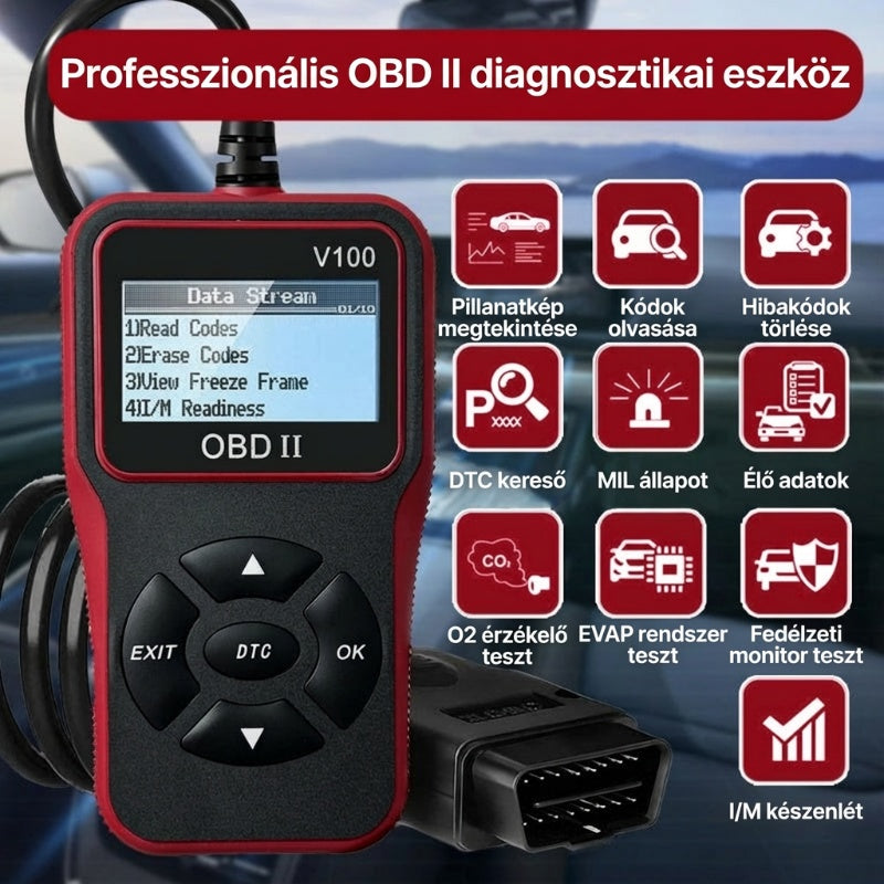 ÁTFOGÓ OBD II FUNKCIÓK: Hozzáférés teljes diagnosztikai funkciókészlethez, beleértve a fagyasztott képkockák adatait, az élő adatfolyamokat, a DTC-keresést és az O₂-érzékelő tesztjeit. Ez kiterjed a jármű kritikus rendszereire, mint például a motor és a párolgási rendszer, biztosítva az autó alapos állapotfelmérését.